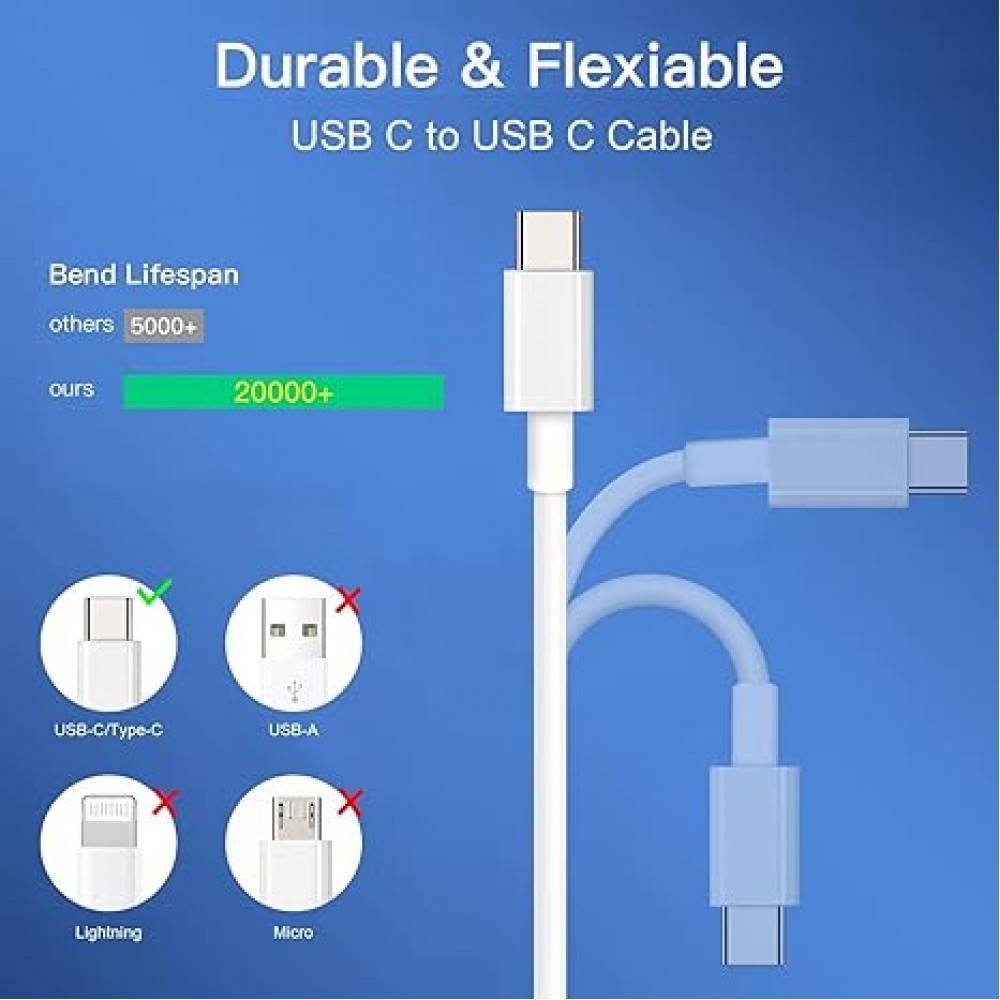 【Unparalleled Quality】:These super durability and flexibility and no tangles usb c charging cables are made of top-rated material and coated with premium TPE.Built-in overvoltage protection to ensure charging safety, which last 4X longer than other typec cords and proven to withstand over 20,000 bends in strict laboratory tests.