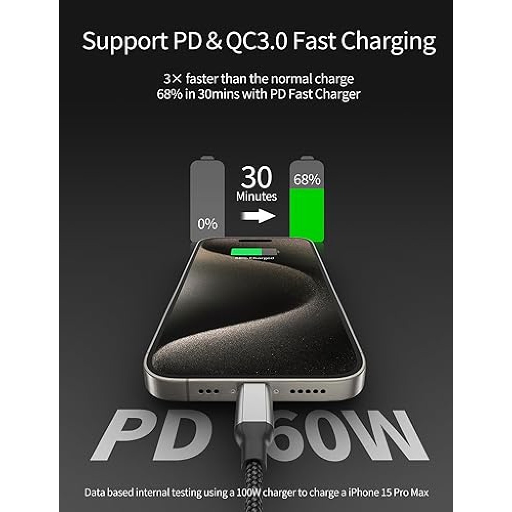• 2ft USB C to USB C Cable 3Pack, 60W(3A)