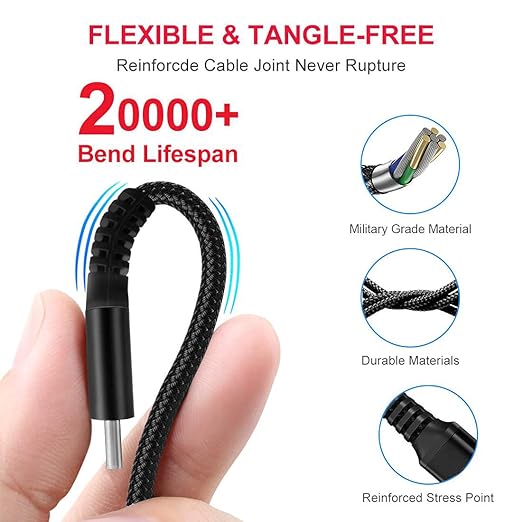 - Reinforced Durability: Superior aluminum metal housing support extra protection and durability with 10000+ times bend lifespan ensures years of trouble-free use, premium flexible nylon braided make it easy to sort out and aviod knoting or tangling.